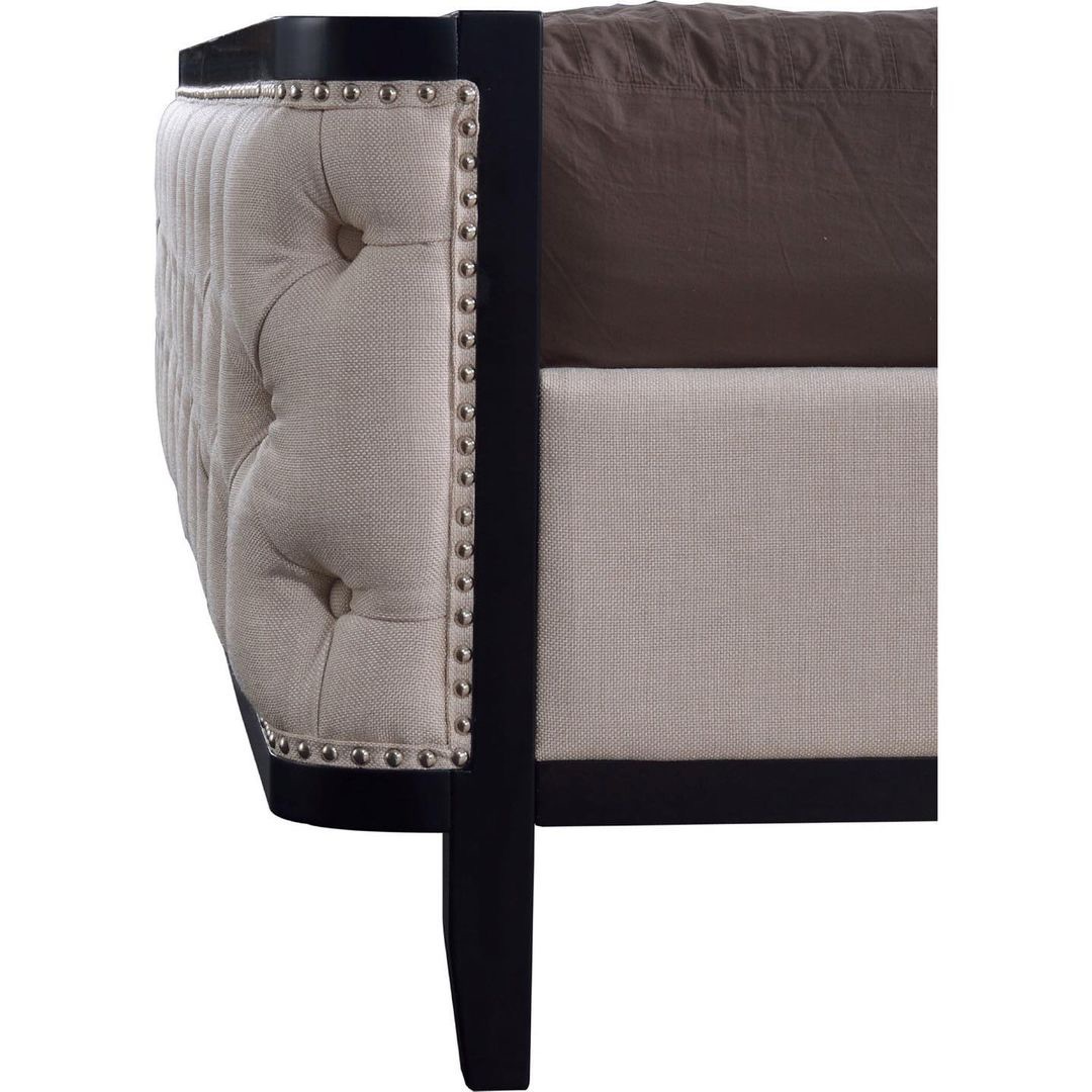 Эта кровать — воплощение изысканной элегантности и комфорта. Каретная стёжка и рамка из массива бука придают ей неповторимый шарм и подчеркивают её премиальный статус. Изголовье, обшитое высококачественной тканью и украшенное декоративными гвоздиками ручной работы, создает премиальный вид и добавляет нотку роскоши. Высокий и массивный профиль изголовья позволяет использовать его с матрасами различных размеров и форм, обеспечивая универсальность и удобство. Под матрасом в основании расположены ламели из натурального массива, что обеспечивает комфорт и долговечность. Ножки с рифлением облегчают чистку и оставляют место для хранения небольших предметов, добавляя функциональности. Наполнение из синтепона и пенополиуретана (поролона) обеспечивает мягкость и поддержку, создавая идеальные условия для отдыха. Эта кровать станет идеальным дополнением вашей спальни, создавая атмосферу уюта и комфорта, и станет настоящим украшением вашего дома.